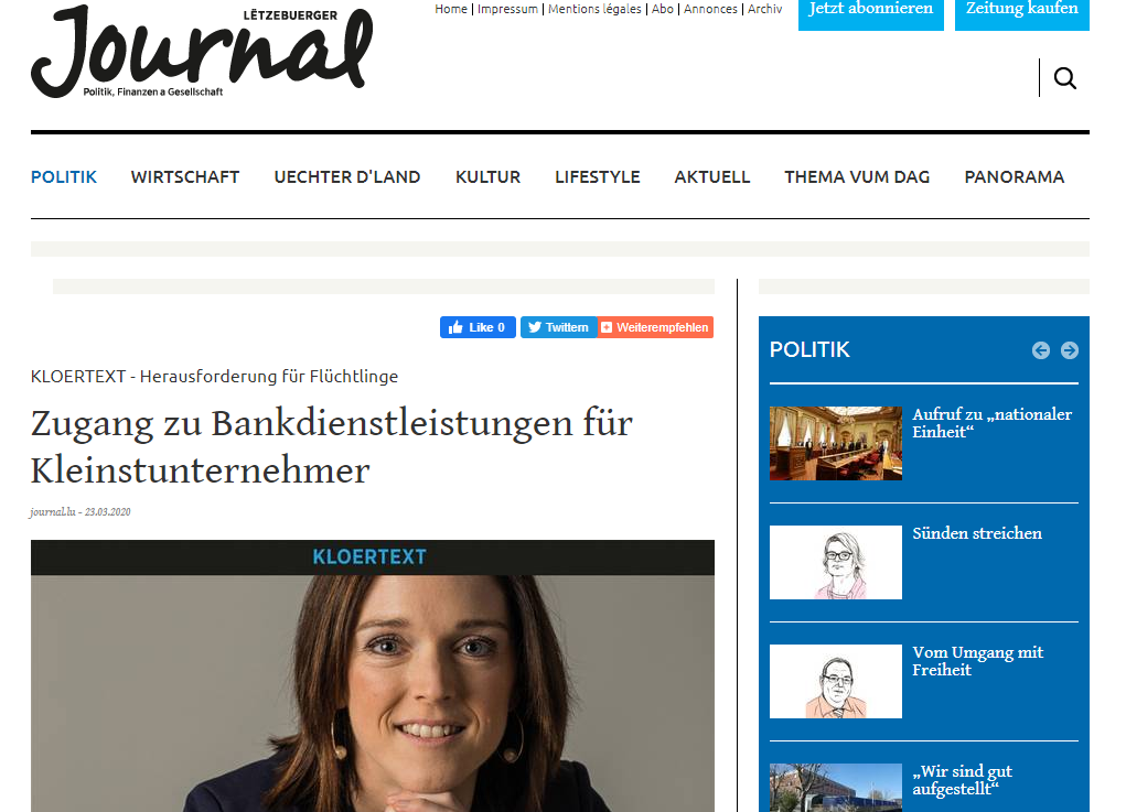 touchpointstouchpointshttps://www.touchpoints.lu/pressZugang zu Bankdienstleistungen für Kleinstunternehmer]]>Lëtzebuerger Journalhttps://www.touchpoints.lu/single-post/2020/03/23/Zugang-zu-Bankdienstleistungen-f%C3%BCr-Kleinstunternehmerhttps://www.touchpoints.lu/single-post/2020/03/23/Zugang-zu-Bankdienstleistungen-f%C3%BCr-KleinstunternehmerMon, 23 Mar 2020 14:26:02 +0000